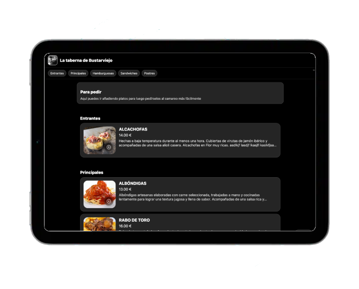 Crea y gestiona tu menú en minutos con una web pensada para restaurantes: categorías, platos, fotos, vídeos y publicación inmediata.